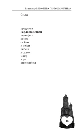 Владимир РАЈКОВИЋ • ГАРДОШАРМАНТАН Сила предивна Гардошанствен којом јеси којом си био и којом бићеш у свакој мојој зори што свићеш 15