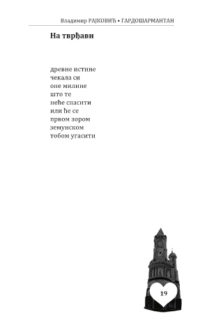 Владимир РАЈКОВИЋ • ГАРДОШАРМАНТАН На тврђави древне истине чекала си оне милине што те неће спасити или ће се првом зором земунском тобом угасити 19